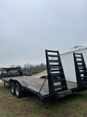 83" - 7K ELECTRIC BRAKE ON SEC OND AXLE;RAVEN BLACK;4' DOVE TAIL FLOOR ON HEAVY DU TY EQUIPMENT HAULERS;3/16 DIAMOND PLATE DRIVE OVERFENDERS W/CTR BRACE ILO DIAMOND PLATE FENDERS;82"X26' - 102"WIDE LOW PROFILE FRAME EXTENSIONS;PRIMER TRAILER BEFORE TOP COAT;CAT YELLOW PIN STRIPES;5'- GN HD TD FOLD UP RAMPS ILO 5'-CH SLIDE IN RAMPS;KICKER FEET ON CHANNEL FOLD UP RAMPS