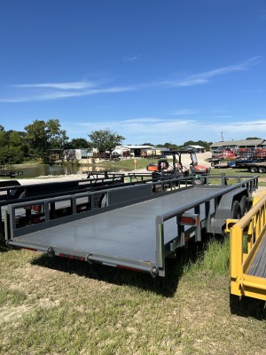 UMBER GRAY;83"X24' - 16" ON CENTER CROSSM EMBERS SPACING;82"X24' - 1/8" DIAMOND PLATE FLOOR;KROHN GREEN STRIPS;4' CHANNEL SLIDE IN RAMPS ILO 4' ANGLE SLIDE IN RAMPS;SPARE MOUNT ON FRONT CENTER OF TRAILER ON HEAVY DUTIES