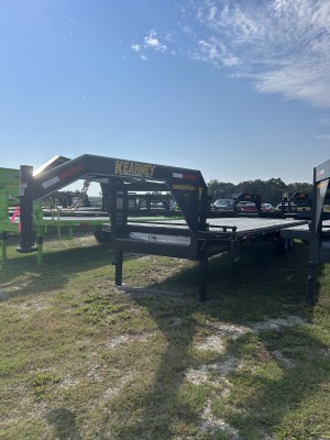 RAVEN BLACK;32' - TORQUE TUBE INSIDE OF FR AME (TOR-K-ONTROL);WHITE PIN STRIPES;BIG-K 44"WIDE RAMPS ILO 22"WID E RAMPS ON DOVETAIL TRAILER