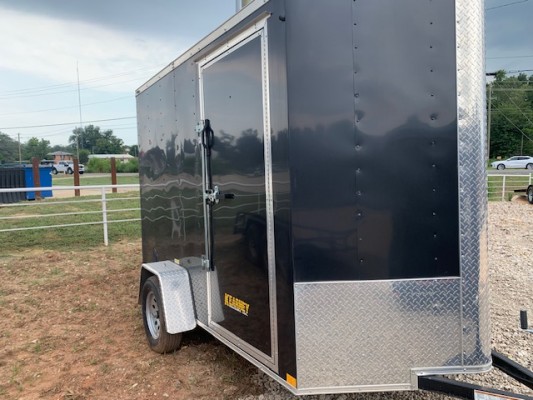 BLACK;RAMP DOOR ON REAR - STANDARD;L.T.F. 12" ADDITIONAL HEIGHT ( ANY COLOR) *PER-LINEAR TRAILER FOOT*;BULL NOSE ON FRONT ILO V-NOSE;STALLION - STANDARD TRIM;INTERIOR SPARE TIRE MOUNT;205/15 5 LUG SILVER MOD SPARE
