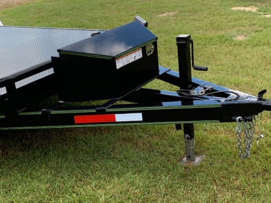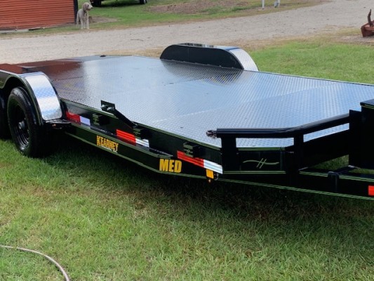 RAVEN BLACK;KROHN GREEN STRIPS;SPARE MOUNT ON CAR HAULER PASS ENGER SIDE OF TRAILER W/CHANNE L IRON MOUNT;V-STYLE TOOL BOX MOUNTED ON TH E TONGUE OF BP TRAILER 14GA/DP 34"WX17.5"DX18"T PAINTED;BLACK-M TA ST225-75-R-15-8PLY /6-HOLE BLACK MOD ILO ST225-75 -R-15-8PLY / 6-HOLE SILVER MOD